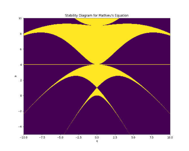 Mathieu’s Equation, solution, and stability#